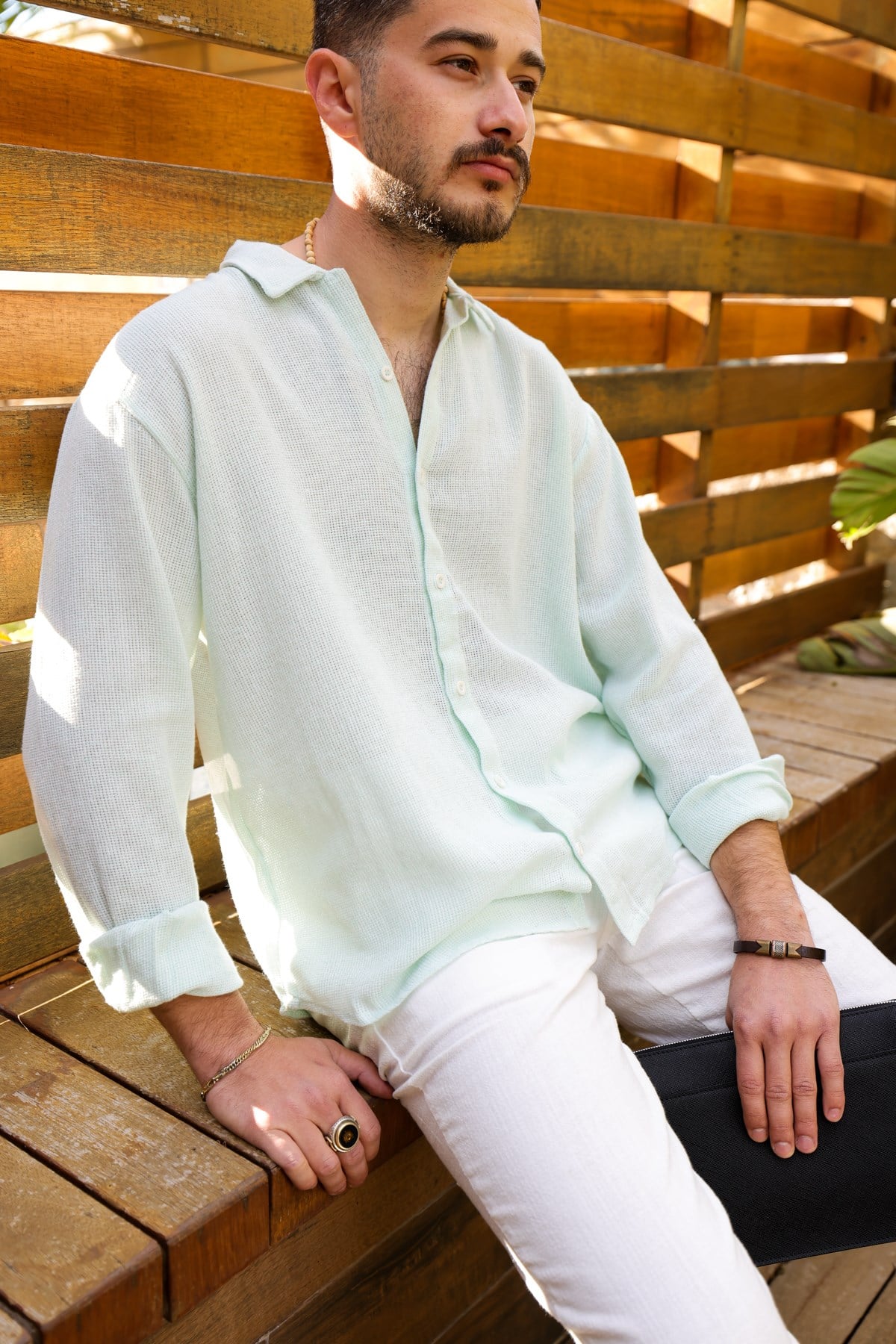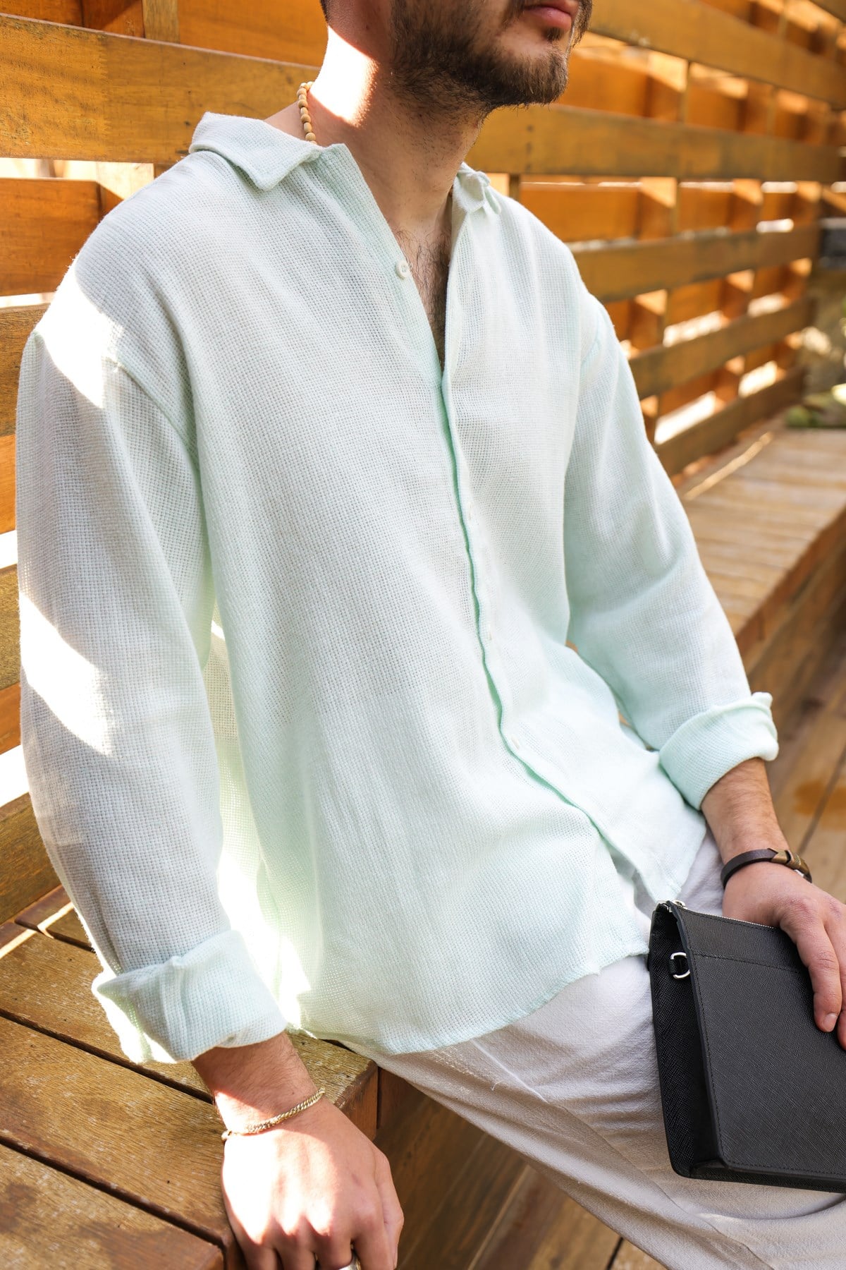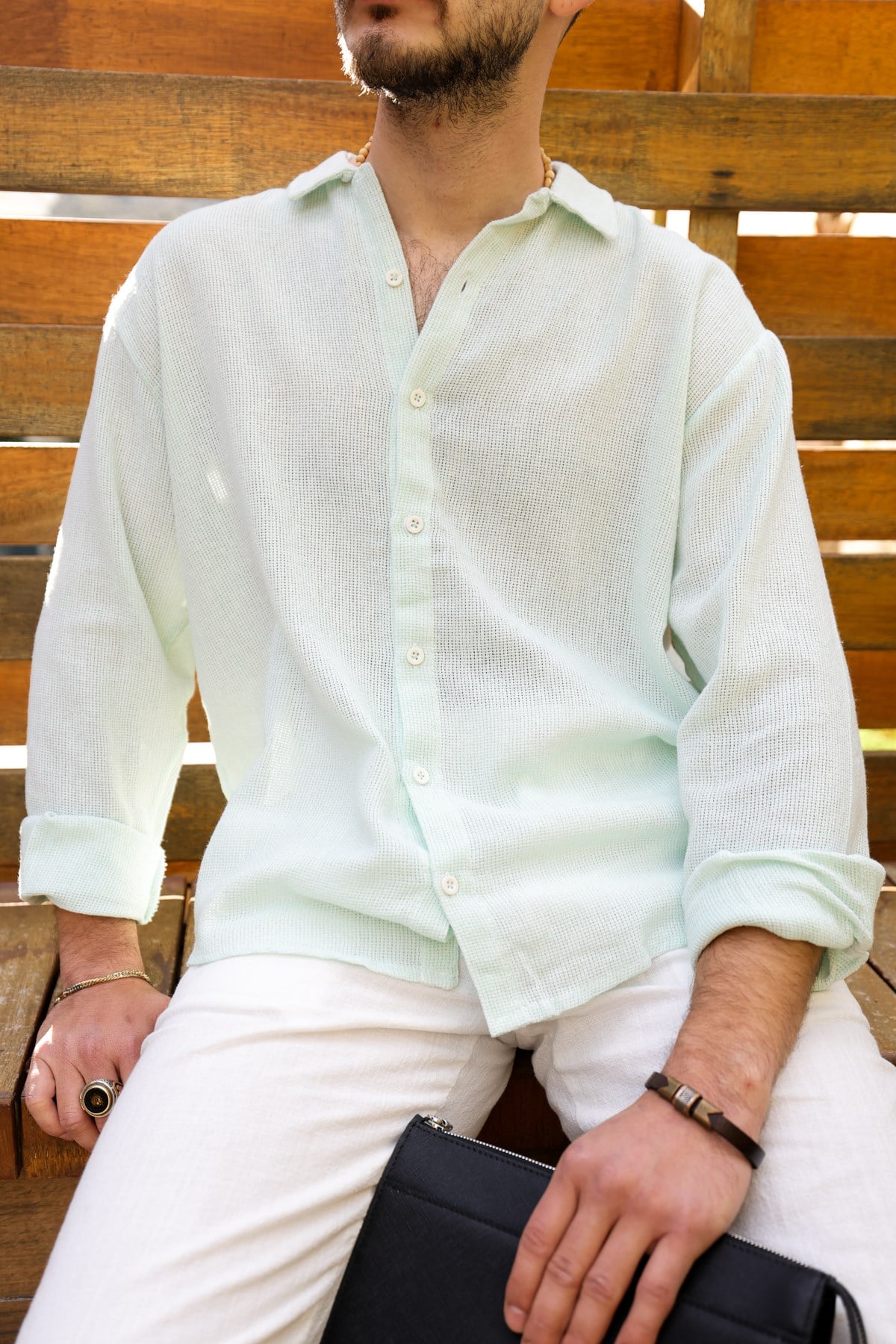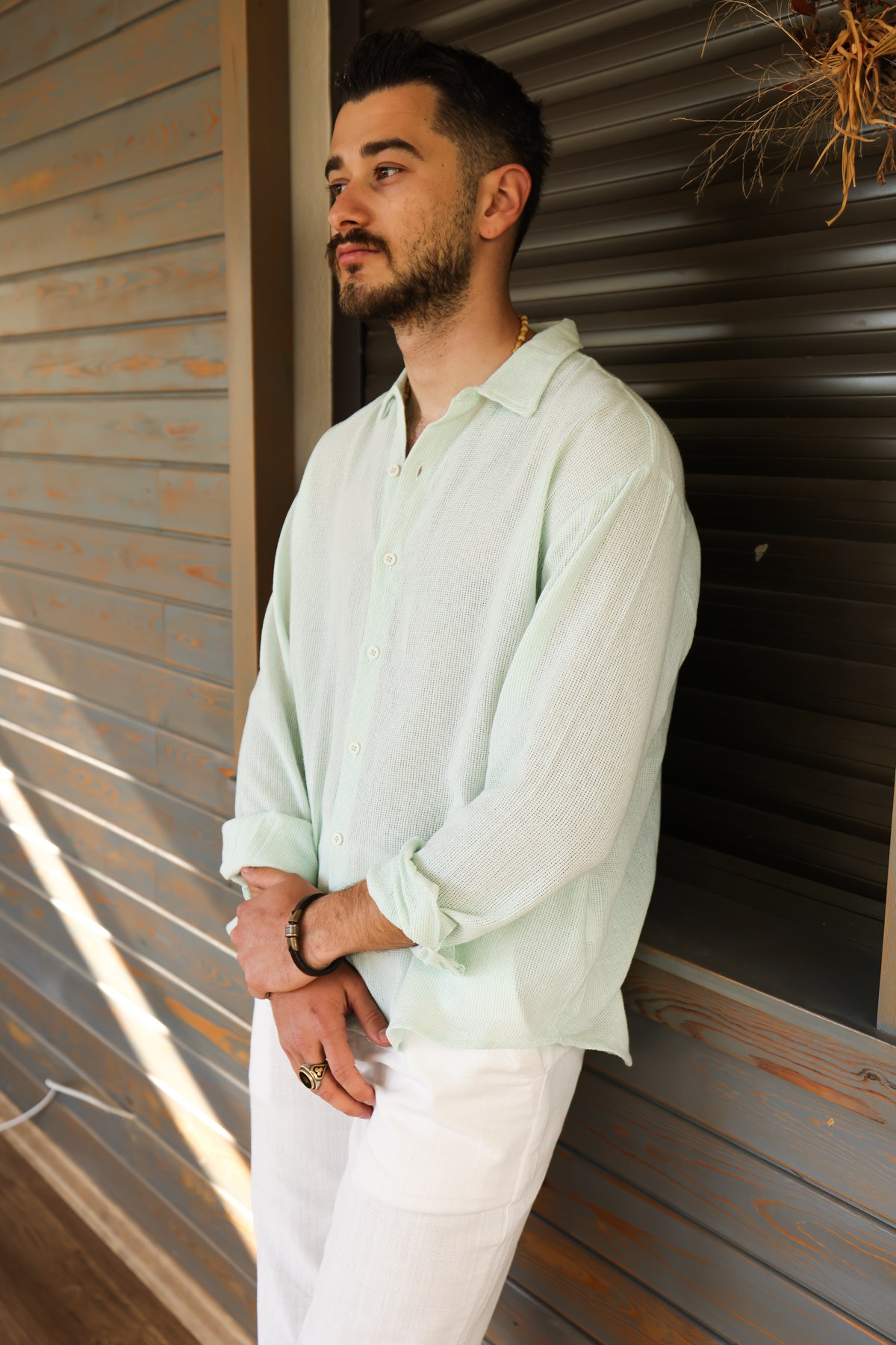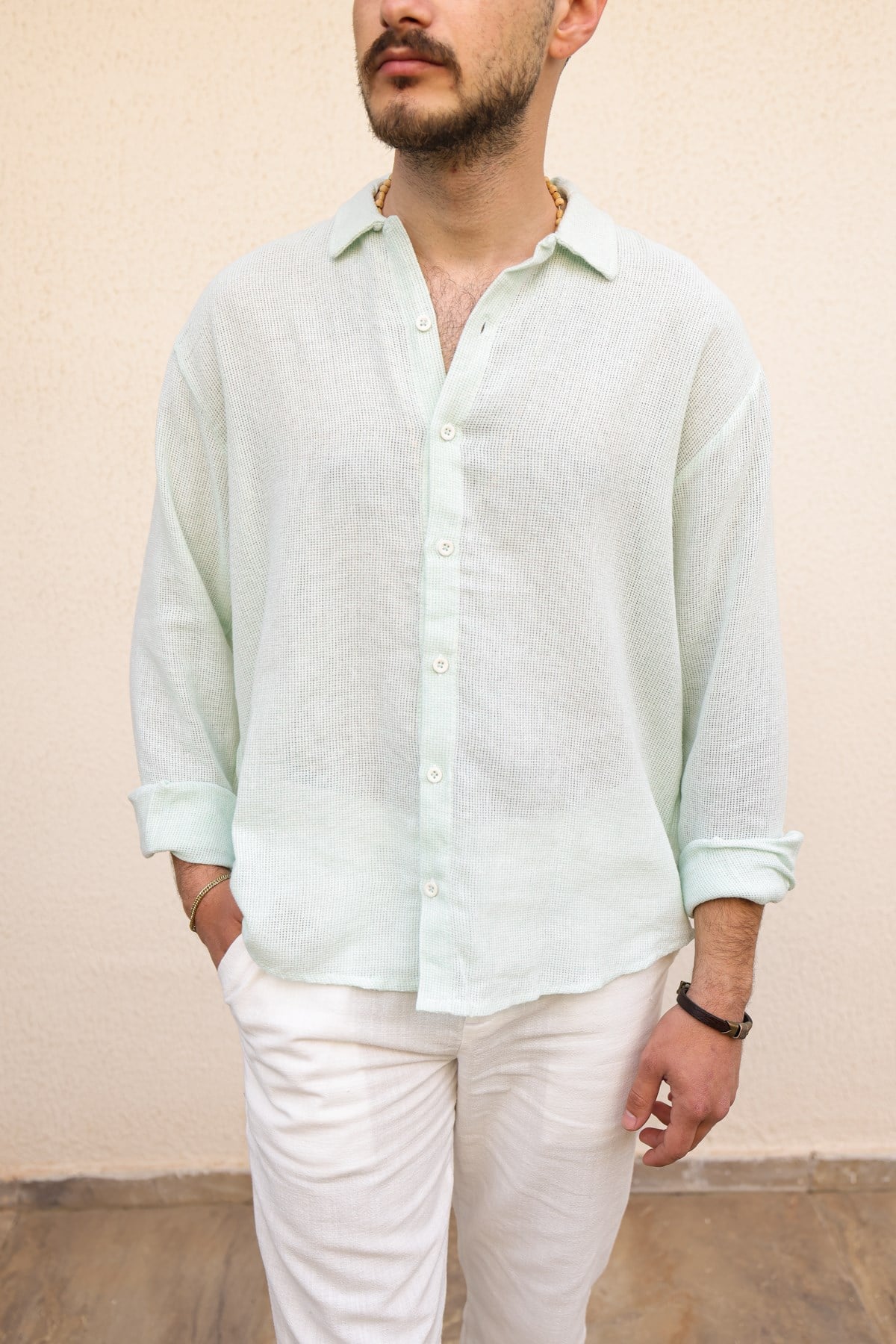 Yakalı , Düğme Kapamalı , Rahat Kesim , Uzun Kollu, Düz Renk Pamuk & Keten Gömlek.