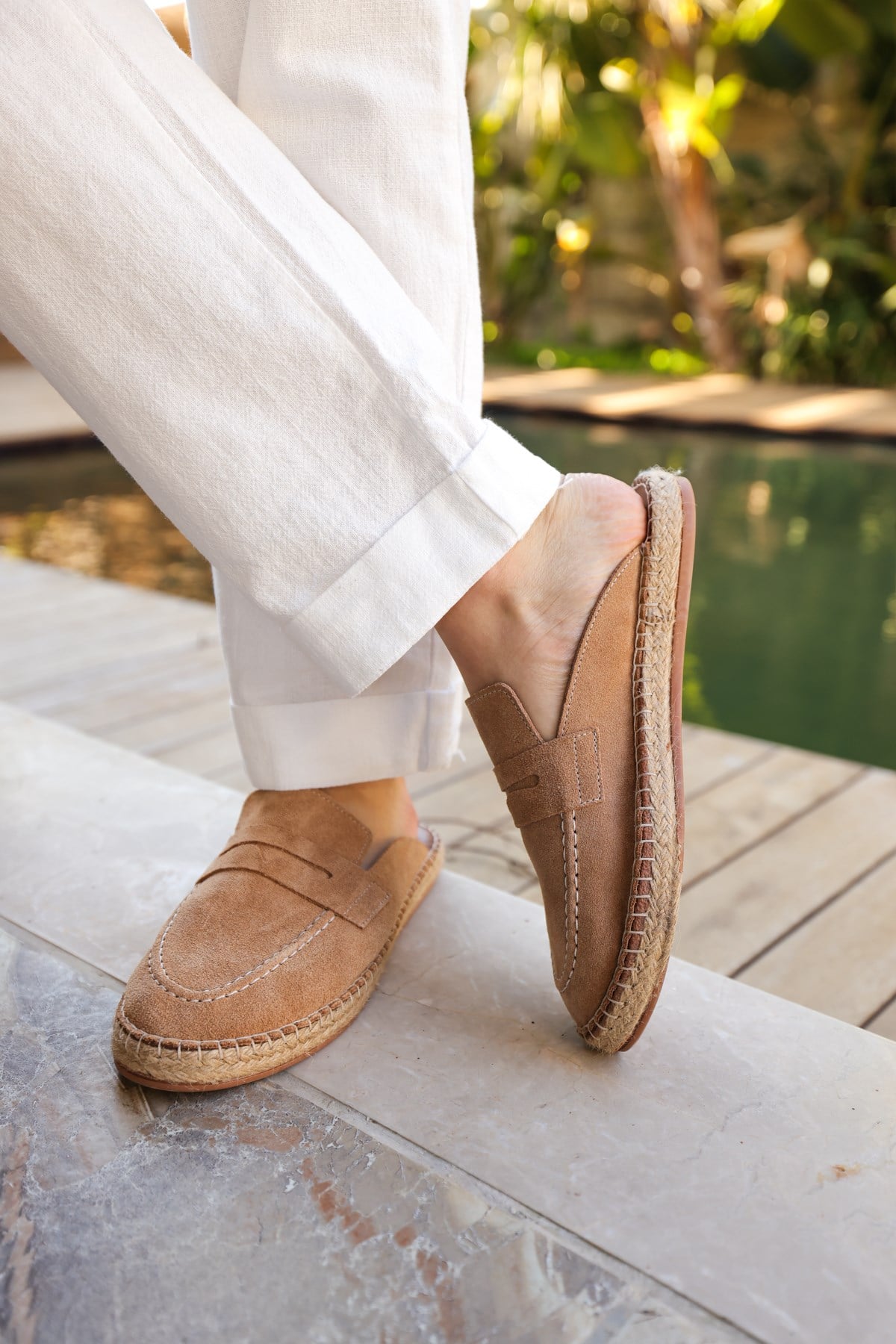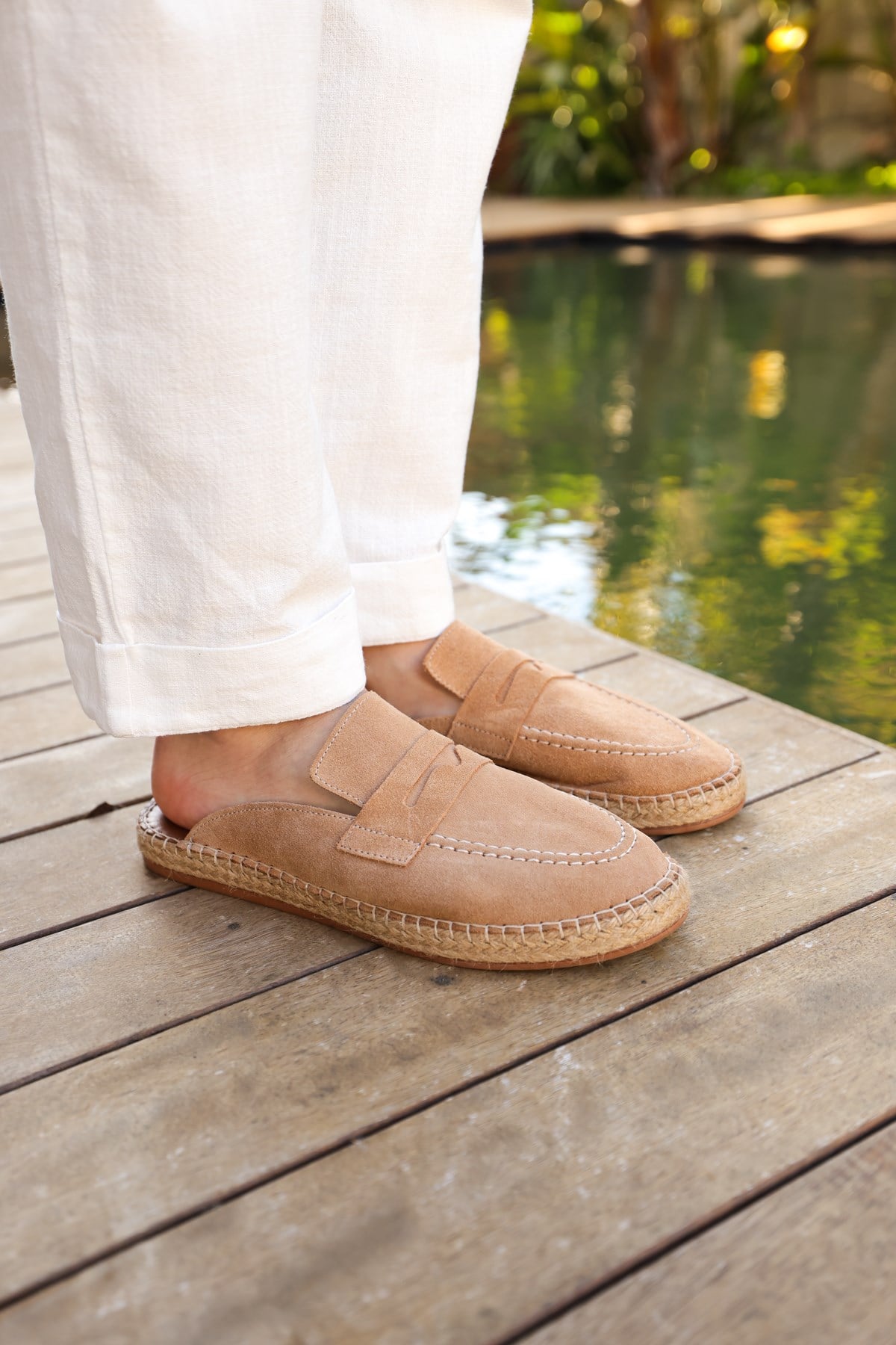 Loafer formunda tasarlanan bu deri terlikler, klasik şıklığı yaz rahatlığıyla buluşturur. Yumuşak deri yapısı ayağı sararken gün boyu konfor sağlar. Şehir stilinde hem şort hem pantolon kombinlerine kolayca uyum sağlar. Zahmetsiz ama karakterli bir görünüm isteyenler için güçlü bir tamamlayıcıdır.