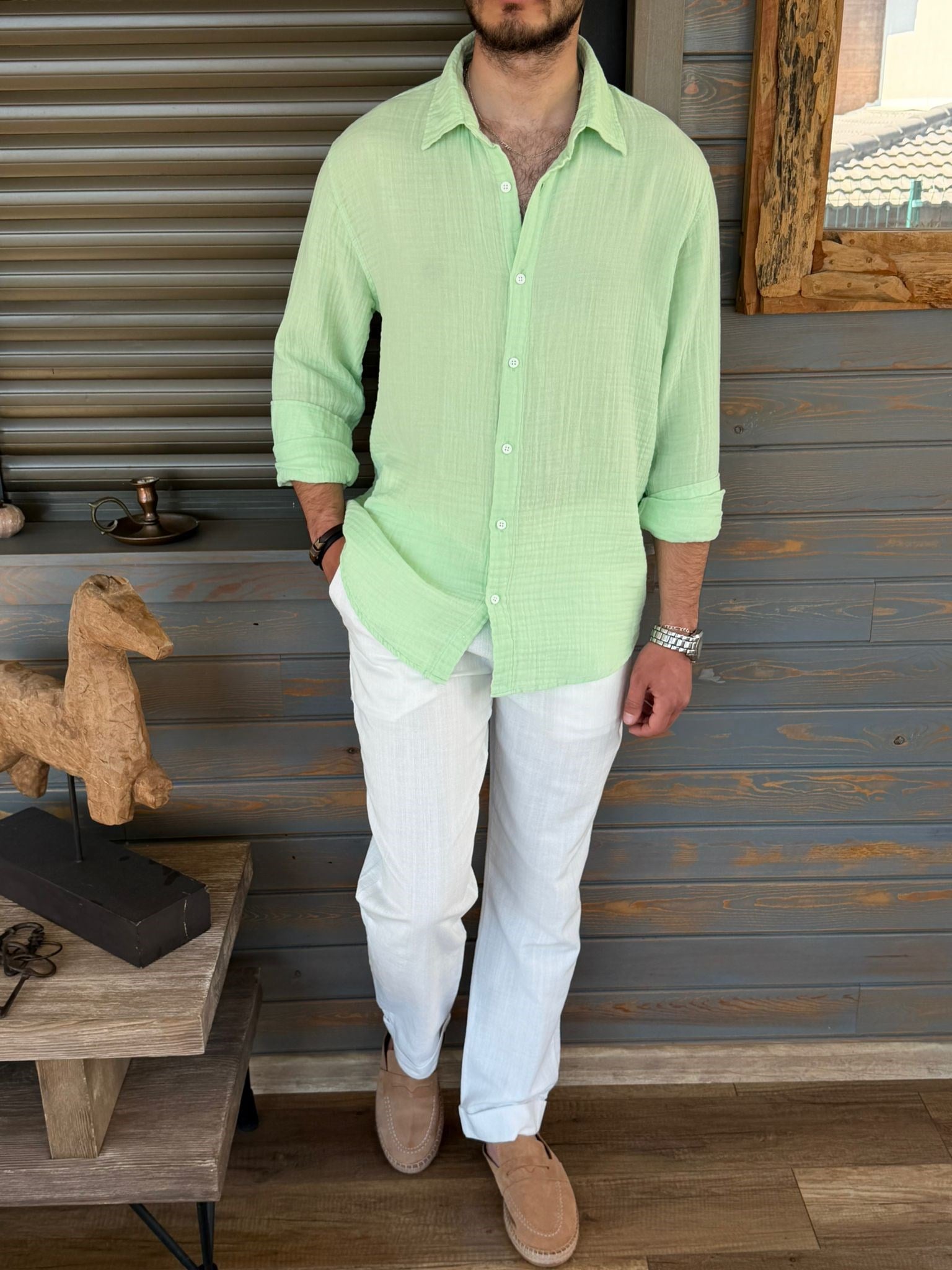 Mikonos Cep Detaylı Basic Müslin Gömlek (st006401)
