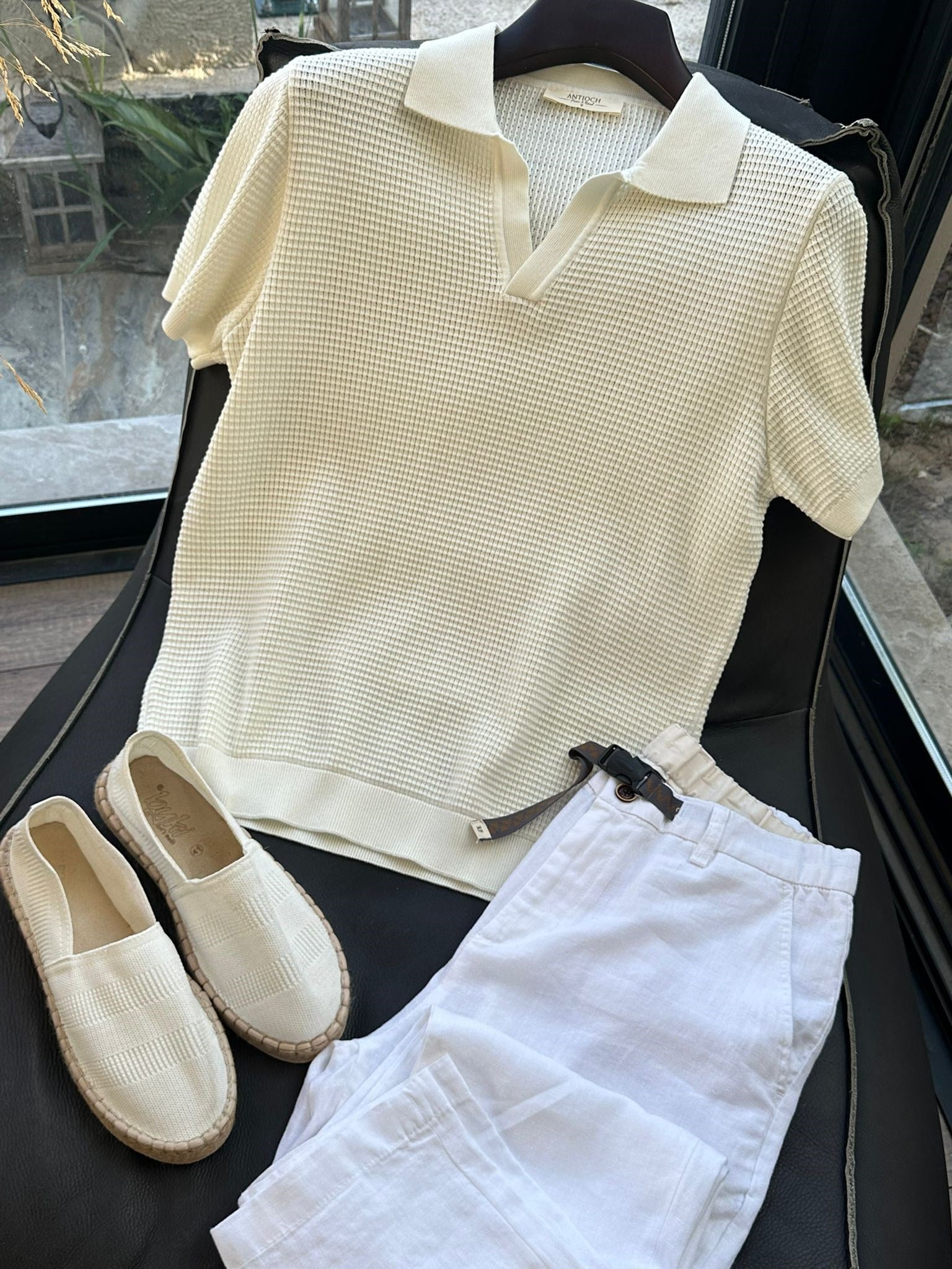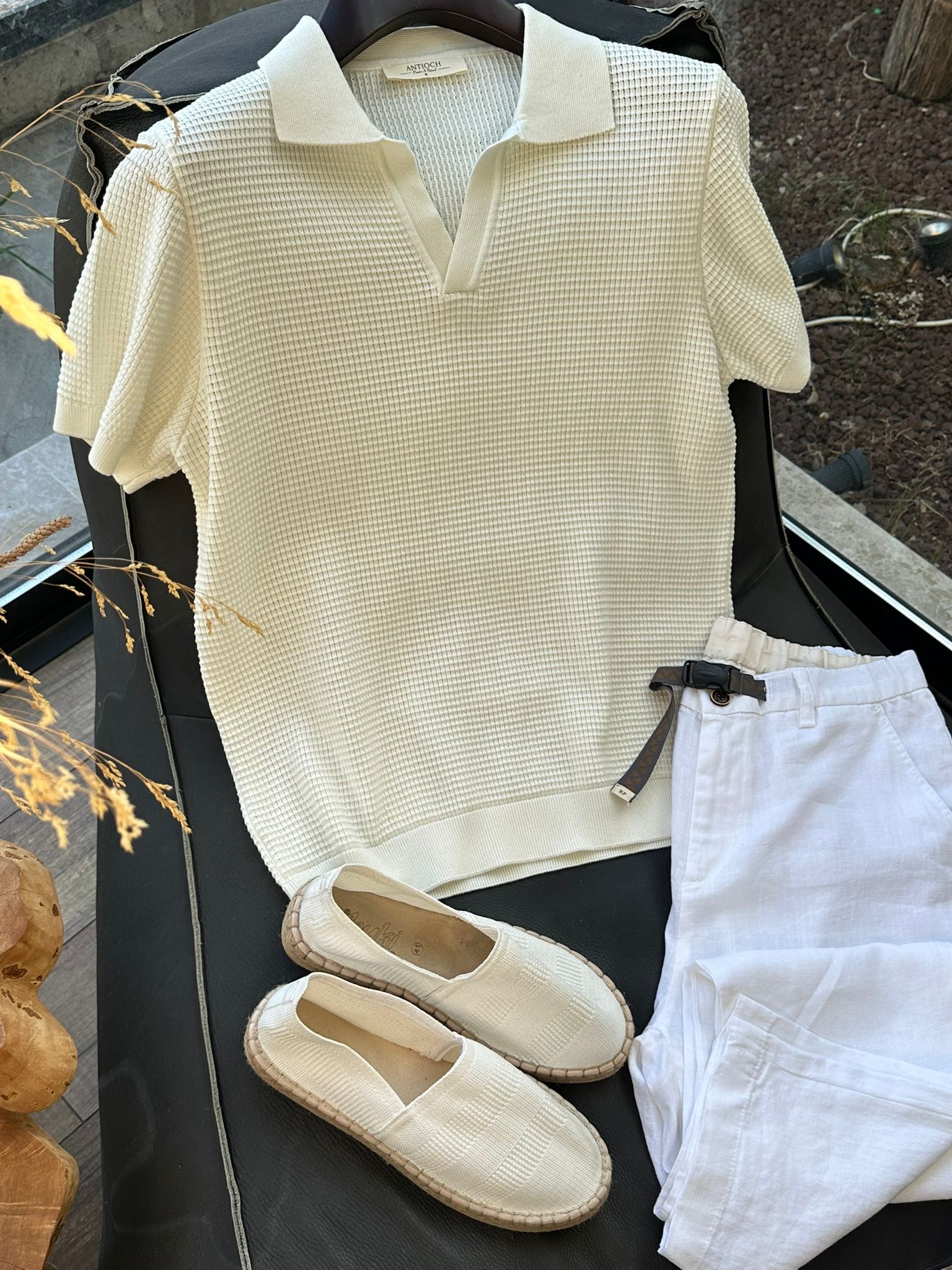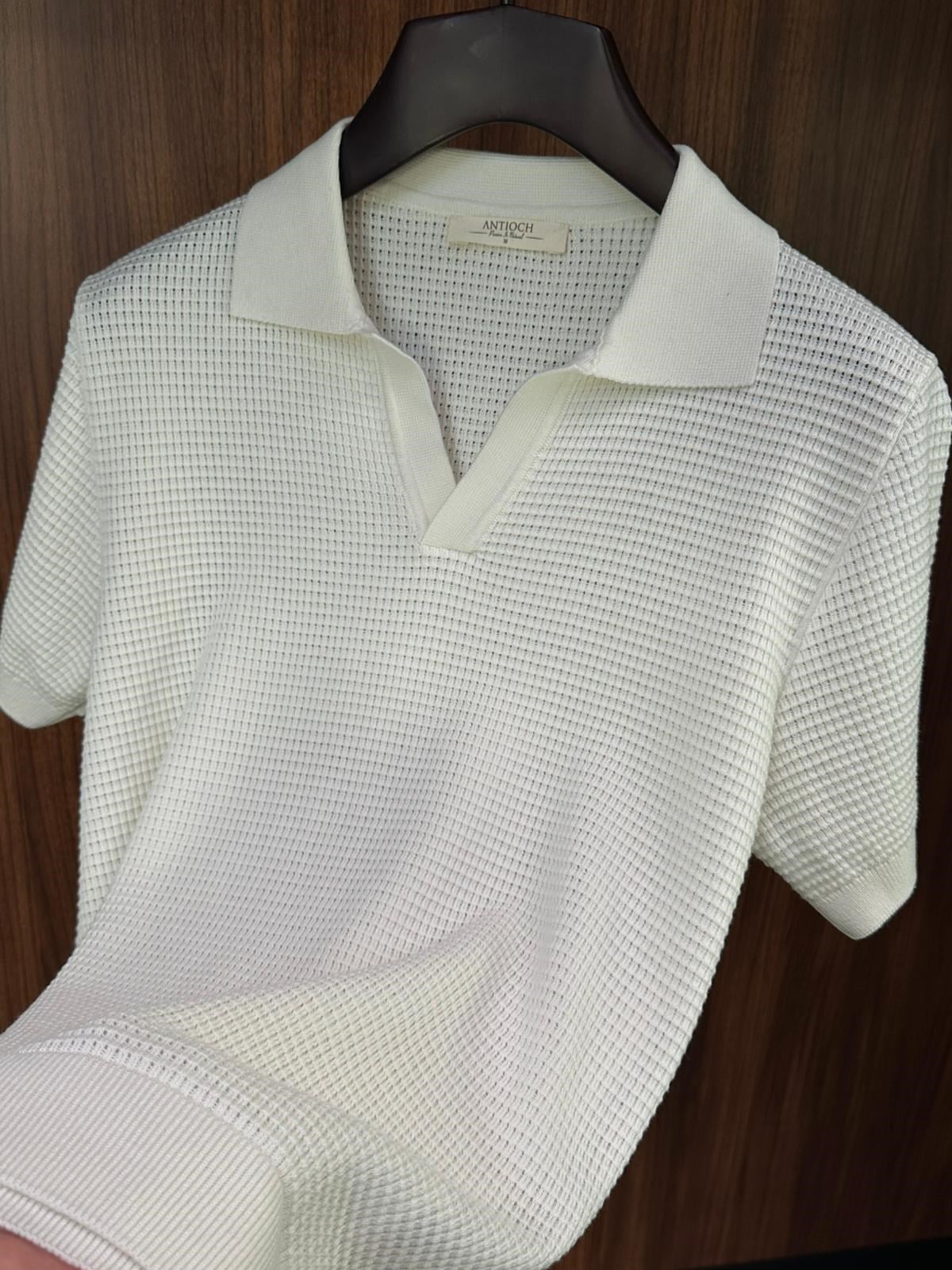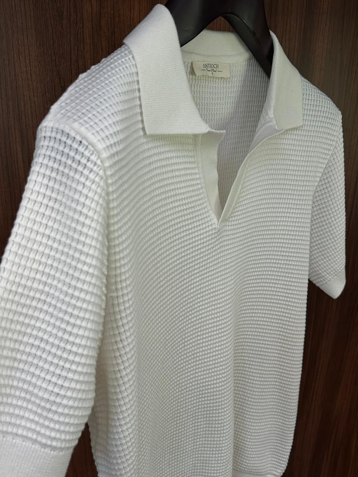 Pirinç Örme Yakalı Triko T-Shirt (st007698)