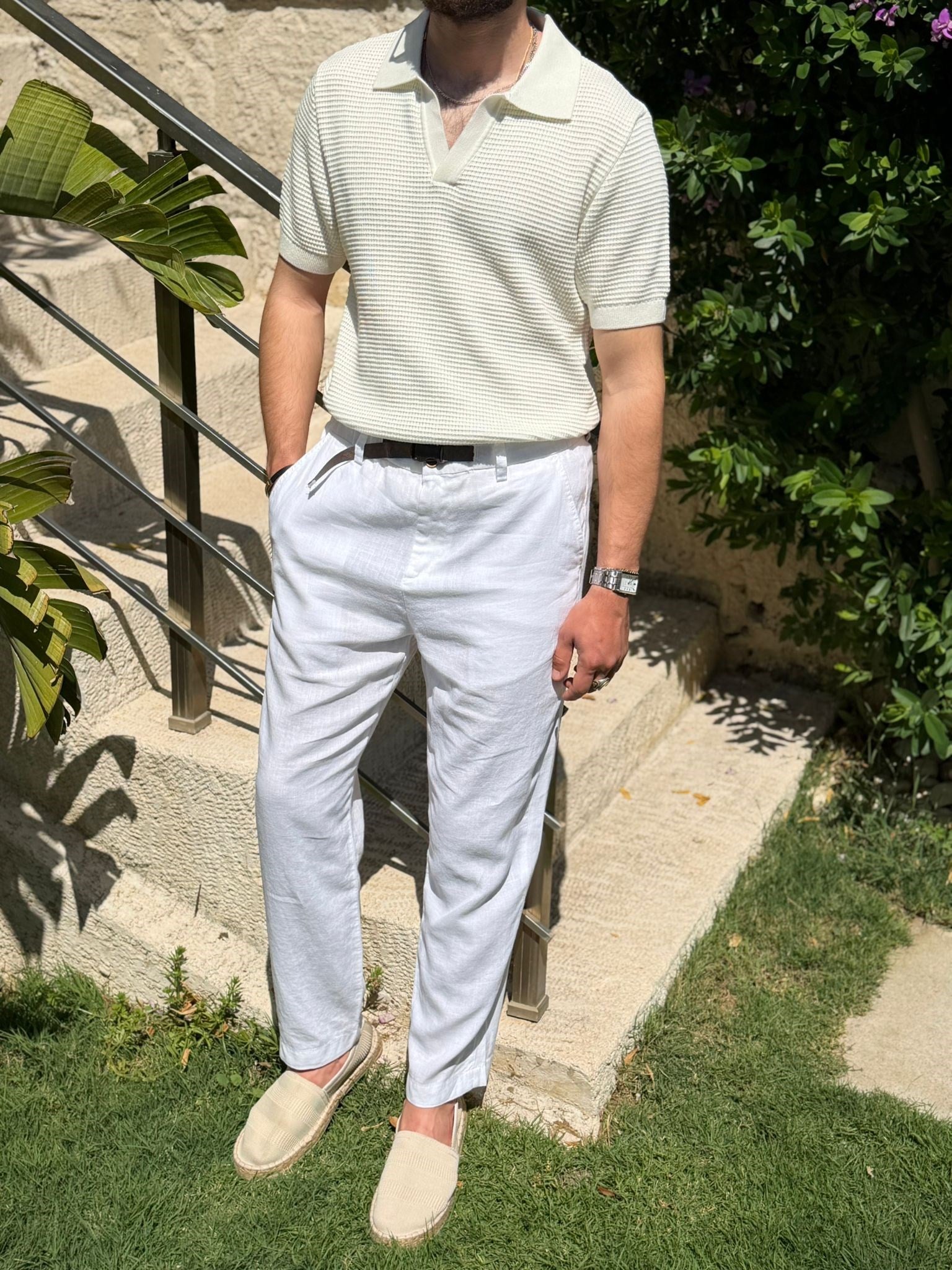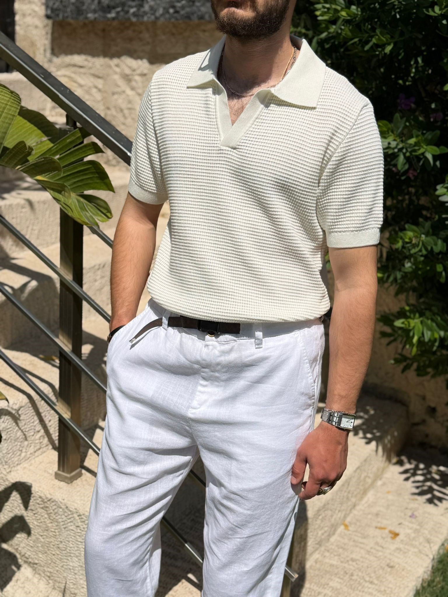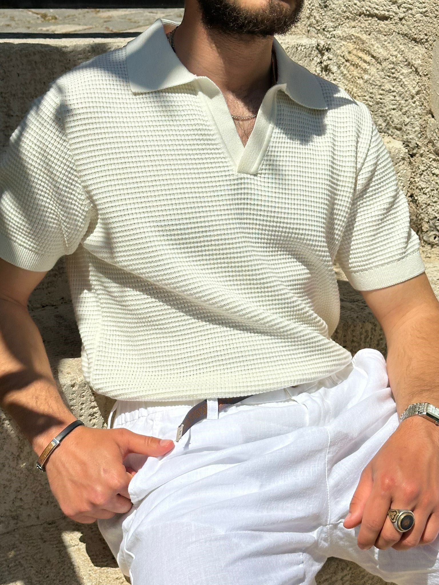 Pirinç Örme Yakalı Triko T-Shirt Pirinç Örme Yakalı Triko T-Shirt